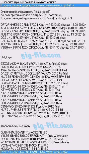 Теперь на нашем сайте появилась возможность получать бесплатные "коды" на все версии антивируса касперского, коды скриншот, будут обновлятся примерно раз в неделю, или по возможности чуть чаще, есть возможность получать так же и ключи к этим кодам.