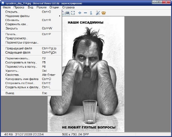 • Программа полностью поддерживает Юникодные имена файлов и может интегрироваться в контекстное меню Проводника Windows: вызовите для любого файла меню правой кнопки мыши и выберите пункт "Universal Viewer". Просмотрщик также можно интегрировать в другие популярные файл-менеджеры.