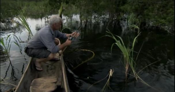 7. Убийца из джунглей (Jungle Killer) Описание: Джереми Уэйд получил завораживающее сообщение об том, как рыба открыто атаковала ныряльщика. Не удивительно, что сообщение пришло из такой отдаленной страны в Южной Америке, под названием Суринам. Речь идет не о самой известной южноамериканской рыбе - речном монстре пиранье, но о чем тогда? Неужели есть рыба которая ни в чем не уступает грозной пиранье и ее титулу самого свирепого хищника в Южной Америке? Есть только один способ это узнать. Джереми отправляется в самую глубь джунглей Суринама в надежде встретиться с этим монстром.