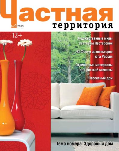 Главные темы номера: Здоровый дом. Художественные миры Светланы Нестеровой. 11 Форум архитекторов юга России. Отделочные материалы для детской комнаты. Пассивный дом. «Частная территория» – профильный журнал о строительстве, архитектуре и дизайне интерьеров.