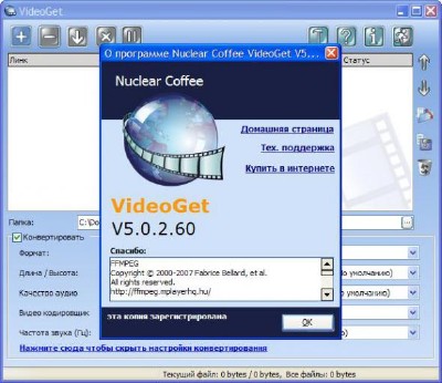 VideoGet — новая версия отличной универсальной программы по закачке видеофайлов с различных сервисов (YouTube, Google Video, MySpace, DailyMotion, AnimeEpisodes.net, Blennus, DumpALink, Glumbert, Lulu TV и т.п.). VideoGet позволяет загружать видео непосредственно на компьютер и автоматически преобразовывать скачанные файлы в разнообразные видеоформаты (avi, mpg, flv, mp4, wmv), конвертировать все видео в множество популярных форматов для более комфортного проигрывания. VideoGet поддерживает AVI, MPEG1, MPEG2, WMV, FLV, MP4, 3GP, MP3 форматы, так что вы имеете возможность не только посмотреть видео на своем компьютере, но и переписать его на свой iPod, мобильный телефон или любой другой портативный прибор. Кроме того вы самостоятельно можете задавать настройки конвертации.