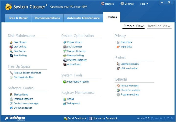 System Cleaner включает в себя менеджер автозагрузки Windows, позволяет удалить неверную информацию удаления из реестра и мастер восстановления, чтобы отменить изменения, если это необходимо ..