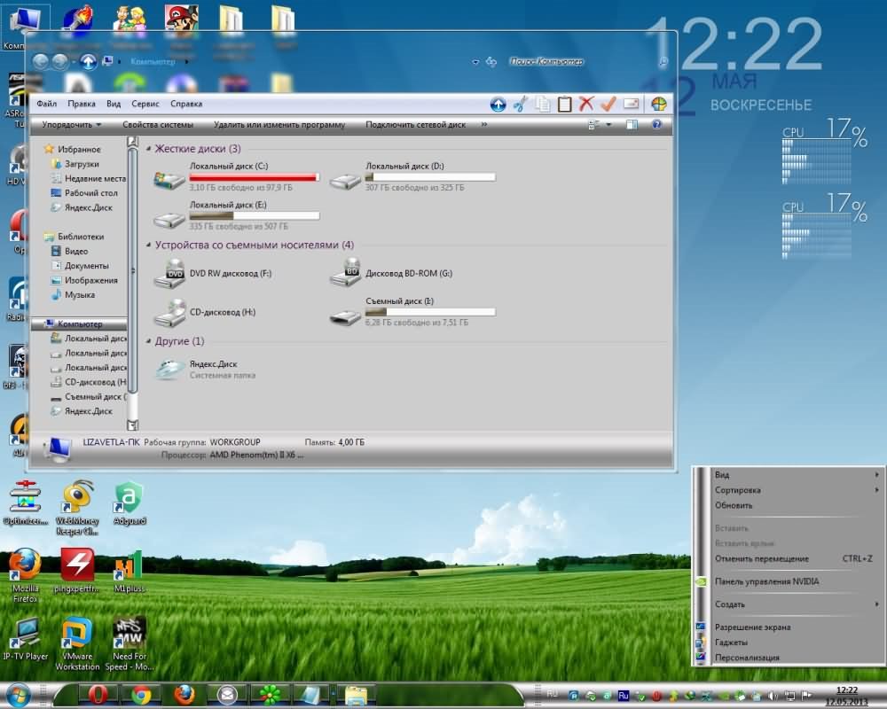 Если все сделано правильно, то можно смело нажимать правой кнопкой мыши по рабочему столу, выбирать персонализация и там двойным кликом запустить нашу тему, которую мы скопировали во втором пункте.