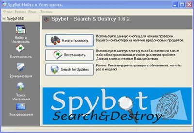 Spybot - Search & Destroy©® программа которая может обнаруживать и удалять с Вашего компьютера различного рода шпионское т.е следящее за вами программное обеспечение.