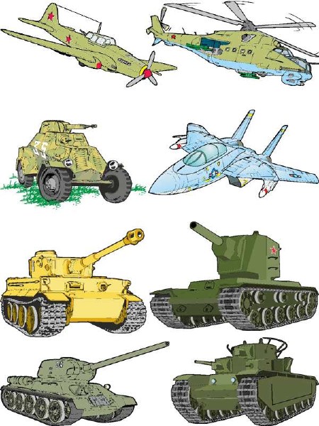 Военная техника (танки, авиация) в векторе 92 CDR + EPS + AI + JPG | 22 мб
