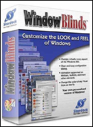 WindowBlinds - Программа для изменения графического интерфейса Windows, через установку тем визуального оформления. Стили визуального оформления в WindowBlinds способны обеспечивать анимацию, звуковое сопровождение, альфа-прозрачность Панели задач, изменяемые иконки на Панели инструментов. Изменяет настройки графического интерфейса (GUI) операционной системы и добавления в GUI некоторых полезных опций - например, размещение в окнах новых кнопок для управления наиболее часто используемыми приложениями (включая медиаплеер).