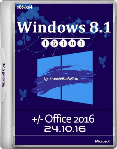 16 редакций Windows 8.1 с обновлениями по октябрь 2016 и интегрированными системными библиотеками + 16 таких же редакций со встроенным Office 2016 Pro Plus VL x86 (можно выбрать, ставить ли Office.
