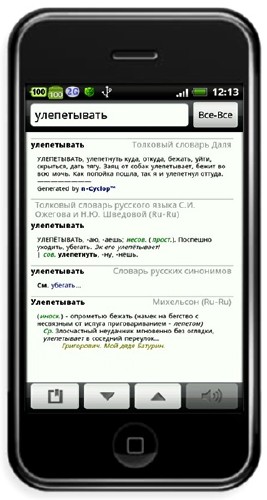 Самая быстрая и многоформатная словарная программа на Маркете. Полностью поддерживает словари форматов Lingvo, Babylon, StarDict, Lingoes и Dictd. Статьи выводятся с полным форматированием, цветами, графикой и звуками. Поиск осуществляется практически мгновенно. Теперь все нужные вам словари будут всегда с вами, на вашем устройстве Android! Эта версия программы является полной. В ней отсутствует реклама, и она позволяет работать с любым числом словарей одновременно.