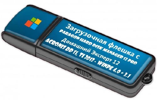 Загрузочная флешка на основе Windows Preinstallation Environment 3.1 и 4.0 (WinPE) и загрузчике bootmgr, содержит в себе: Paragon Hard Disk Manager 12 Professional ver.10.1.19.16240, Paragon Домашний Эксперт 12 ver.10.1.19.16240, Acronis Disk Director 11 v11.0.0.2343, Acronis True Image Home 2012 v15.0.0.7133 Plus Pack.