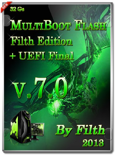 MultiBoot Flash Filth Edition 2013 - это мультизагрузочная флешка, замена CD диску. В первую очередь предназначена для устройств в котором по каким либо причинам нет DVD привода. С данной сборкой возможно установить операционную систему, проверить компьютер на ошибки, вылечить от вирусов или же пользоваться как карманной ОС. Сборка предназначена для системных администраторов и людей занимающихся обслуживанием компьютеров "на выезд".