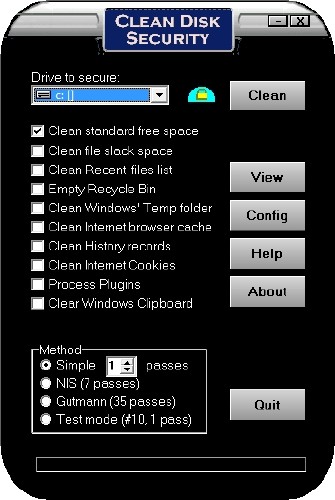 Clean Disk Security позволяет вам безопасно удалить файлы, которые не возможно будет восстановить в последствии. Удаленные фйлы остаются на диске и их возможно восстановить. Но эта программа удаляет файлы совсем без возможности восстановления. Утилита также может удалить Windows swap файл и не нужные временные файлы, будь-то файлы из Корзины или Интернет-браузера.