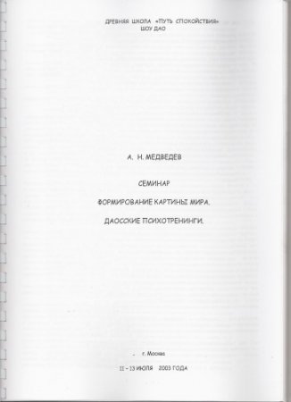 Семинар А.Н.Медведева "Формирование картины мира. Даосские психотренинги" 11-13 июля 2003 года