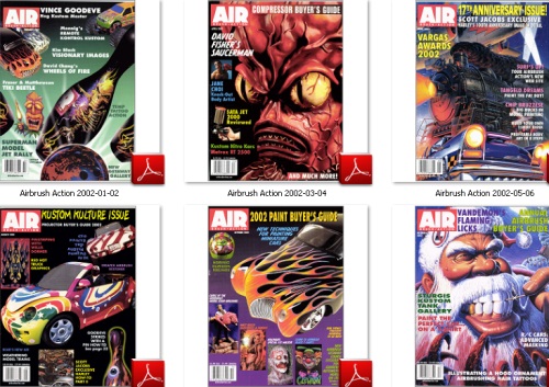 Airbrush Action - архив за 2002год. Популярный журнал об а[цензура]графии на английском языке. Выходит 6 раз в год. А[цензура]графия – техника художественной росписи любых поверхностей. С её помощью возможно создавать эффекты и рисунки, недоступные обычным художественными средствам.