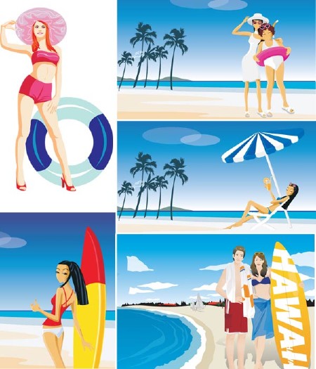 Люди на пляже в векторе 10 cdr + eps | 44 мб
