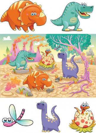 Веселые Динозавры (подборка векторных отрисовок) 20 cdr + ai + eps + jpg | 75 мб