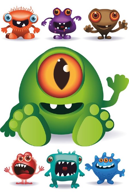 Мультяшные симпатичные монстрики в векторе 36 cdr + ai + eps + jpg | 140 мб