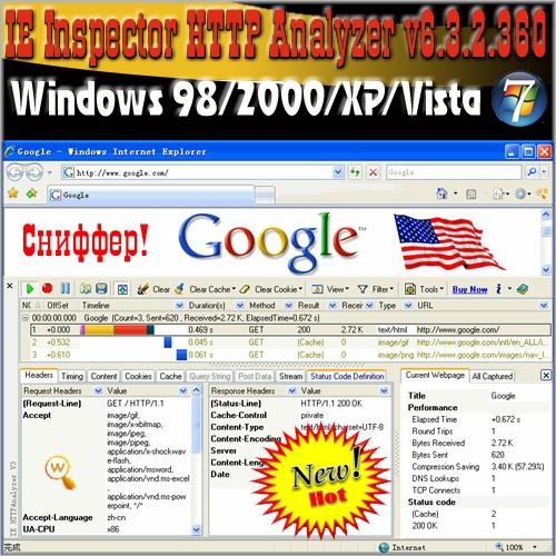 IEInspector HTTP Analyzer – программа-сниффер, позволяющая вам производить мониторинг и захватывать HTTP/HTTPS трафик в реальном времени. Позволяет отслеживать и отображать широкий диапазон информации, включая заголовки, содержание, cookies, строки запросов, отправку данных, потоки запросов и ответов, перенаправление URL и многое другое. Программа дает возможность удобно просматривать потоковые запросы. Кроме этого, данная программа обеспечивает кэширование информации и очистку сессии, информацию о статусе HTTP кода и имеет несколько настроек по фильтрации. Программа доступна в двух версиях, в качестве отдельного полнофункционального приложения и в качестве дополнения для Internet Explorer. Кроме IE, программа поддерживает работу с браузерами Opera, Firefox и другими интернет-браузерами. Основные возможности программы сводятся к удобной отладке HTTP-запросов.